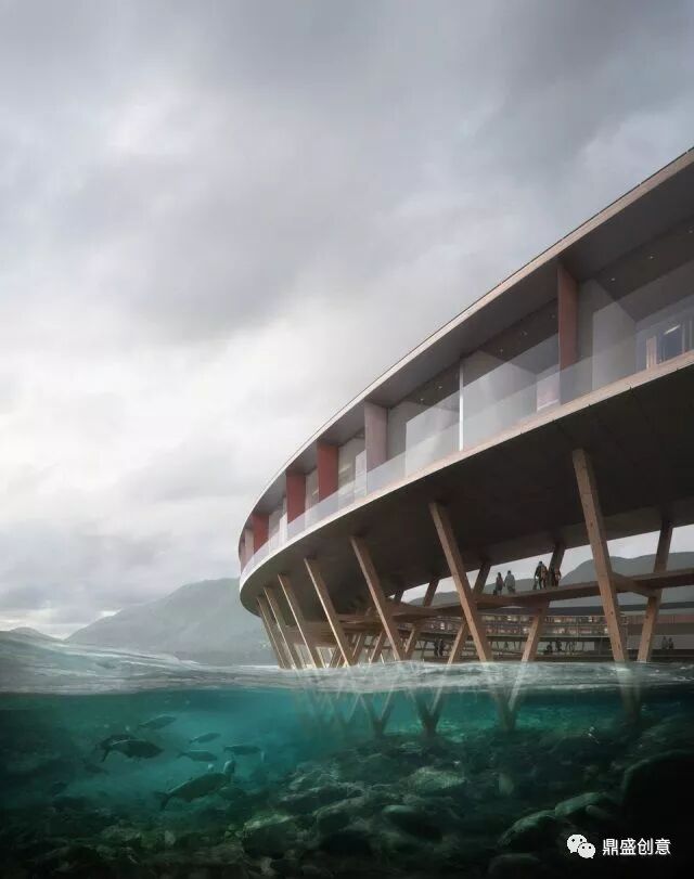 Svart酒店 ◎来源谷德 每一次的旅行都想与你同在 世界上没有一次旅行解决不了的事儿 如果有,那就两次! 在北极探险队的帮助下,来自Sn?hetta的设计师Asplan Viak 和 Skanska共同设计了世界上第一家自发电酒店“Svart”。“Svart”是挪威语,意为“黑色”,是挪威人对深蓝色Svartisen和Svartisen的赞颂。 坐落于Svartisen冰川脚下 与横跨挪威北部Mel?y的冰川同栖同住 因为古挪威语中,“黑色”和“蓝色”是同一个单词,所以这个单词才用来赞美冰川与自然,以及Svartisen带给挪威人民的自然遗产。与其他大部分当代挪威建筑相比,该酒店每年可降低85%能耗。 因此,它成为了世界上第一个自发电酒店建筑,也是世界上最靠北边的自发电建筑。 最小占地面积 Svart环形体态由Almlifjellet山脚下延伸至Holandsfjorden fjord净水域。环形的外貌让居住在此的人可以享受360度峡湾全景,充分融于自然环境之中。该建筑外貌的设计灵感来自于挪威本土建筑“fiskehjell”和“rorbue”。木质底部支架减少了建筑对自然环境的干扰,建筑也因此获得近乎透明的外貌。 环形的建筑外貌 酒店下方铺设了木板路,为夏日游客带来清爽体验。步入冬季,木板路还可以用来停靠船只或皮划艇,节省了库房和停靠站等额外设施的建设。除此之外,挑高的主体结构还能够使乘船游客自由穿梭。酒店四周珍稀的自然环境仅可依赖船只通行踏足,因此该处还设立了由Bod?往返酒店的摆渡船。 架起的底部结构减少了对环境的干扰 能源最优化利用 建筑采用了一系列尖端科技以实现自发电建筑标准。譬如说,建筑师们对全年太阳辐射表现与山区环境进行了广泛的分析,以尽可能优化能源吸收。酒店屋顶由挪威本土生产的太阳能板铺面,其材料全部采用干净的水利能源生产,进一步减少了碳对环境的污染。隐蔽的露台为游客提供较为私密且享受庇护的游乐环境。夏日正午,建筑立面保护室内不受阳光直射,避免了人工冷气机的使用。冬日里,巨大的立面开口将温和的日光引入进来,充分利用太阳光对室内保温。 休憩露台 酒店搭建全部采用低蕴藏能量材料以实现发电站标准。该蕴藏能量是指生产,运输,建造,更换材料和建筑内部装饰材料的总和。由化石燃料生产的材料拥有最高的蕴藏能量。该酒店在建造过程中采用木材可以最大限度减小建筑对周围环境的影响,与此同时,项目尽量避免对钢结构和混凝土等能源密集型材料的使用。 采用蕴藏能量材料
